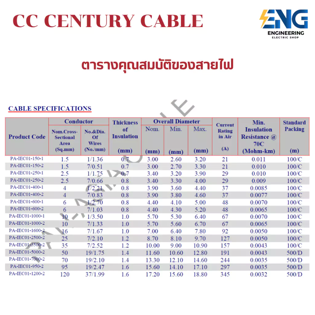 สายไฟ THW IEC01 CC CENCURY CABLE