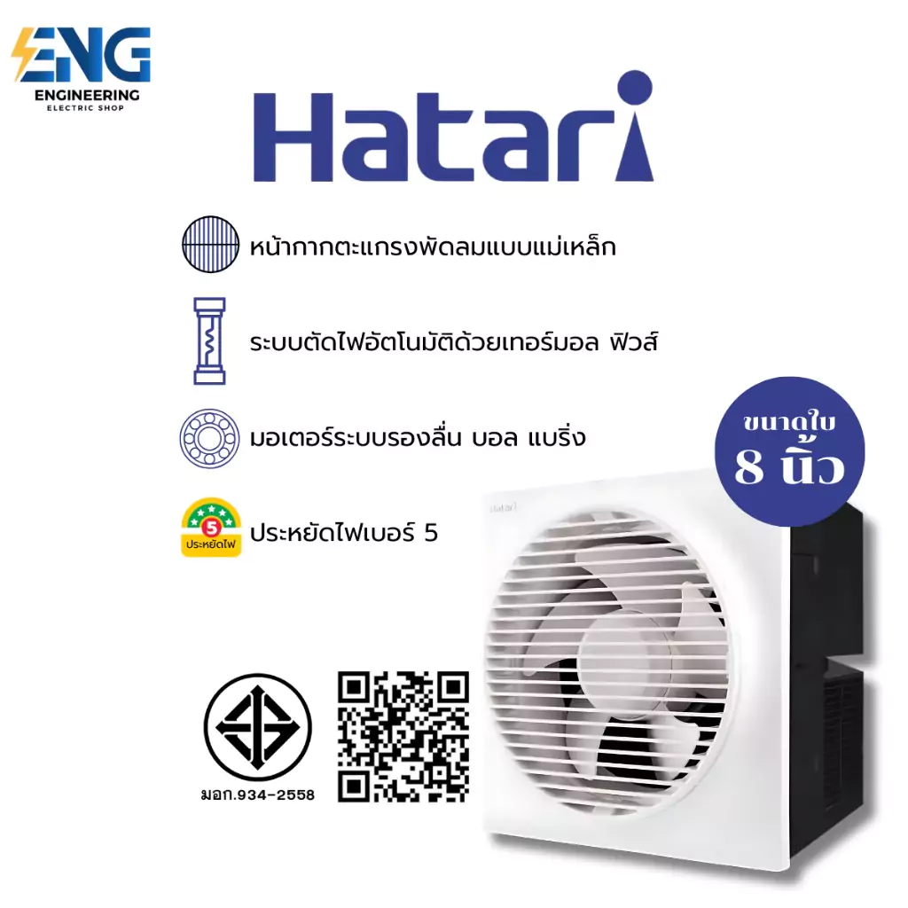 HATARI พัดลมระบายอากาศติดผนัง 8 นิ้ว(มีหน้ากาก) รุ่น VW20M1(G)