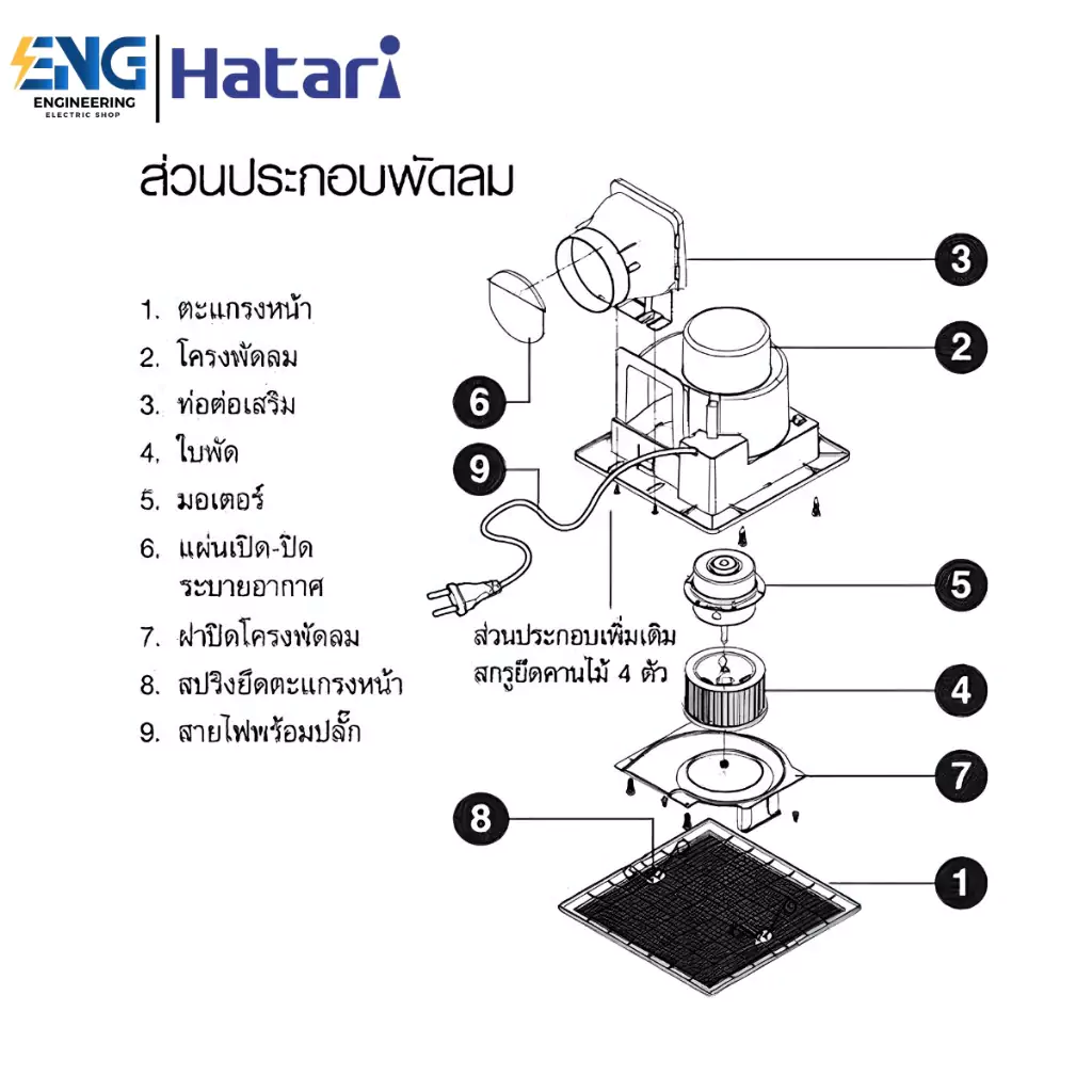 ● หน้ากากตะแกรงพัดลมช่วยเพิ่มความสวยงามในการใช้งาน