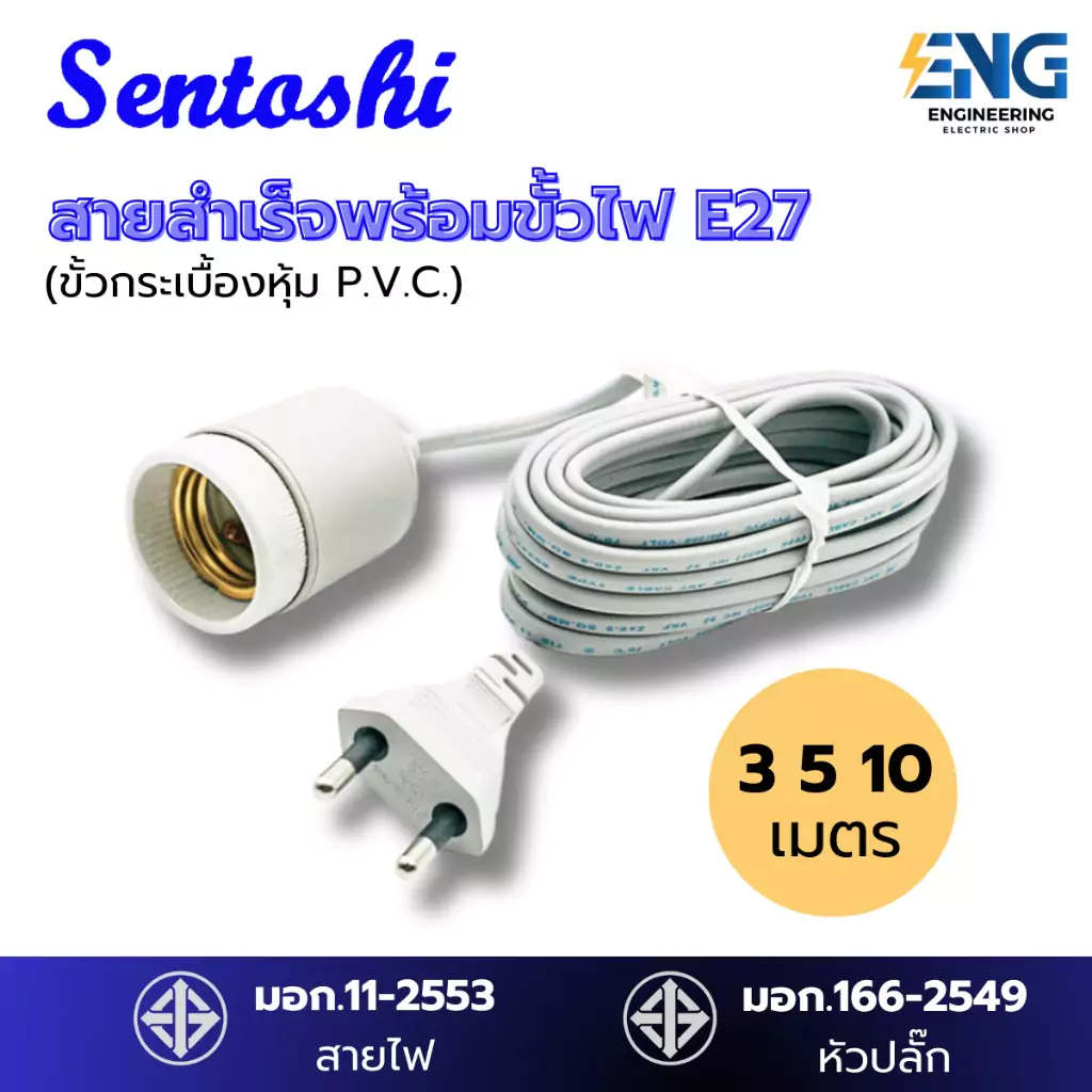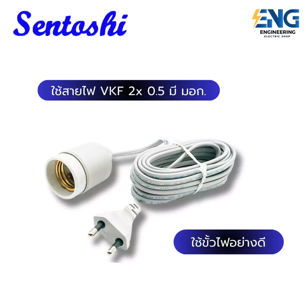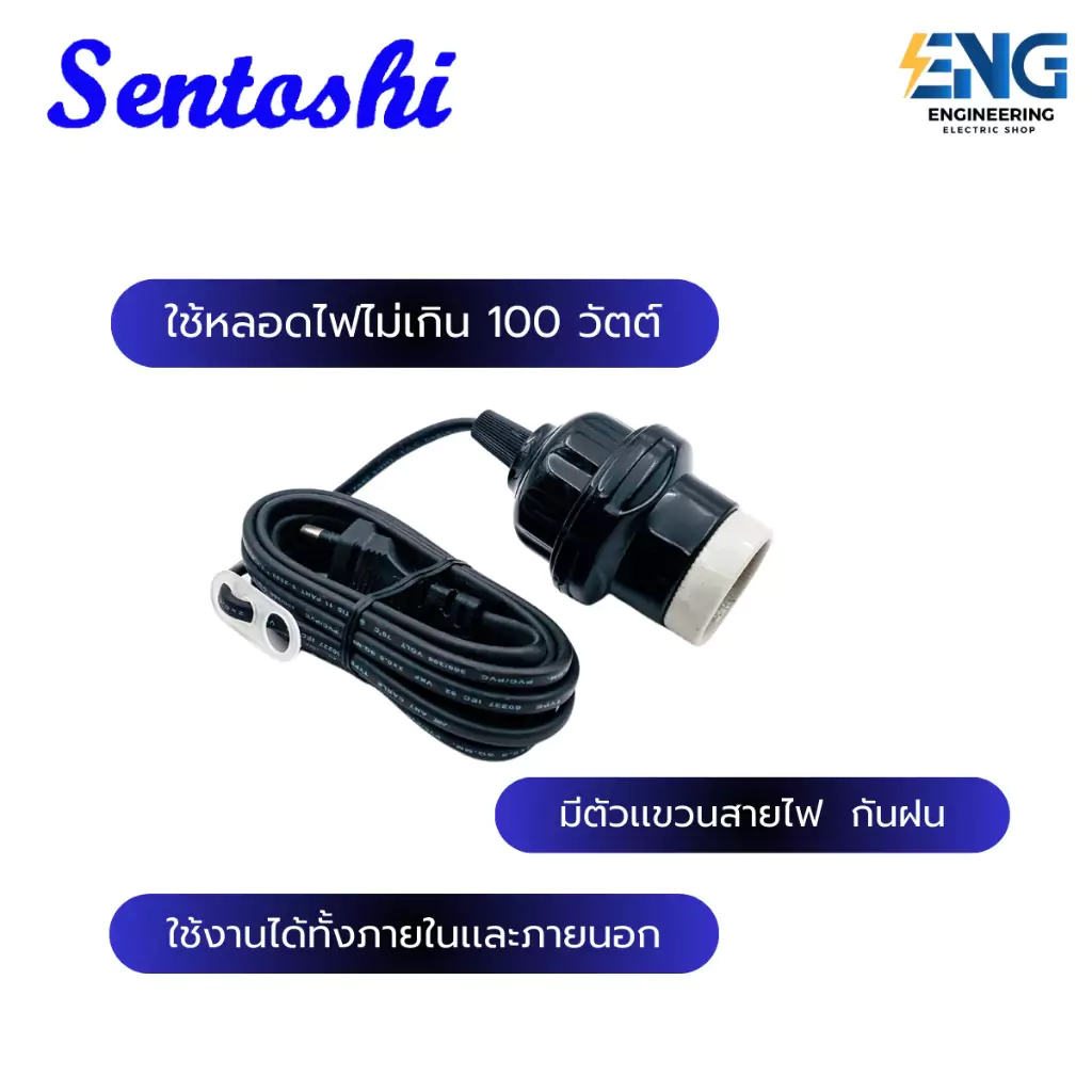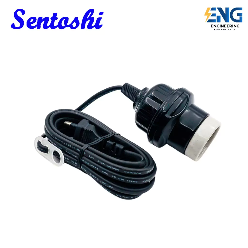 Sentoshi สายไฟต่อหลอดไฟ ขั้วกระเบื้องถูกหุ้มด้วยยาง E27 พร้อมสายสำเร็จรูป กันฝนได้